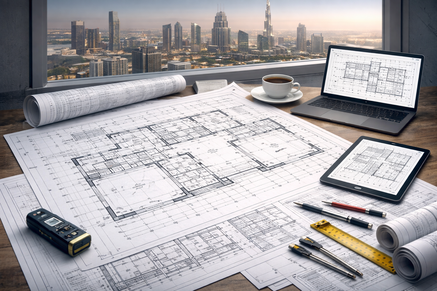 We create accurate 2D floor plans in Dubai/UAE from as-built data, capturing walls, openings, room geometry, and real dimensions for renovation and fit-out projects.