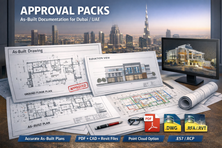 We deliver approval-ready as-built documentation packs in Dubai/UAE, built from verified site capture and structured for fast review and clear coordination. These packs consolidate the core sheets your consultant, contractor, or authority reviewer expects to see in one consistent set.