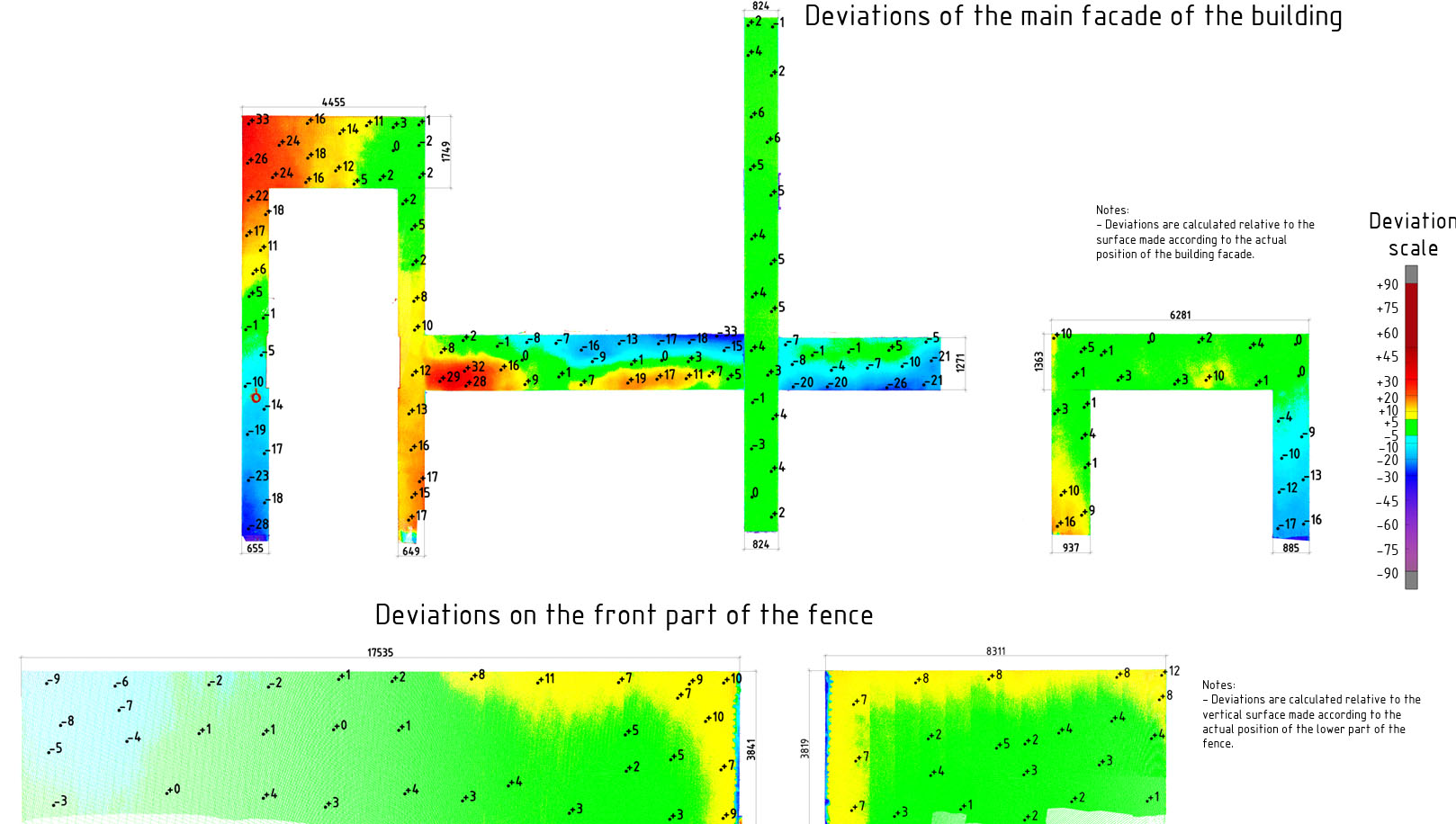 Deliverables include deviation visuals and measurable offsets so teams can plan corrections or adjust details without surprises.