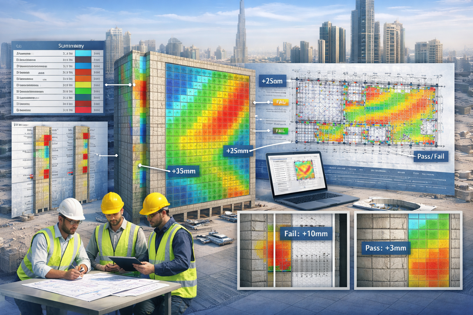 Tolerance reporting in the UAE is commonly used for QA/QC sign-off, contractor verification, and pre-handover documentation. It helps keep decisions objective and traceable.